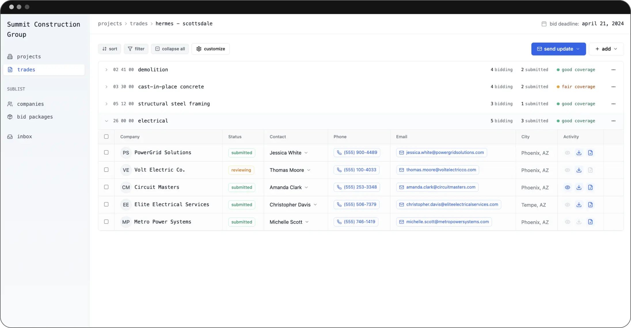 Save your favourite bid instructions, follow-up cadence, and trade sets as reusable templates. Launch the next project in minutes instead of starting from scratch.