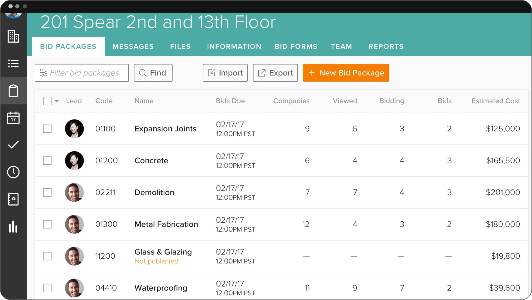 - Unlimited project bid packages
